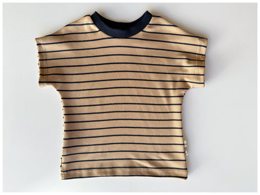 Sommershirt Stripes "Tan/Navy" aus Bio Baumwolle Sofortkauf