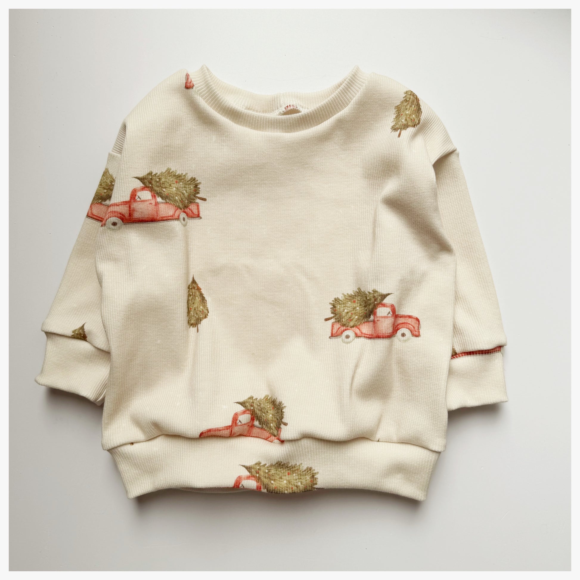 Der Sweater Rib Jersey "Weihnachtsauto" ist der süßeste Begleiter für die Winterzeit. Ein leichter Oversized Pullover aus Ribjersey mit einem niedlichen Weihnachts-Design, besteht zu 95% aus Baumwolle und 5% Elasthan, wodurch er atmungsaktiv und bequem ist. Er lässt Ihrem Kind genügend Bewegungsfreiheit und der großzügige Halsausschnitt ermöglicht ein schnelles Anziehen. Der Sweater ist der perfekte Allrounder!